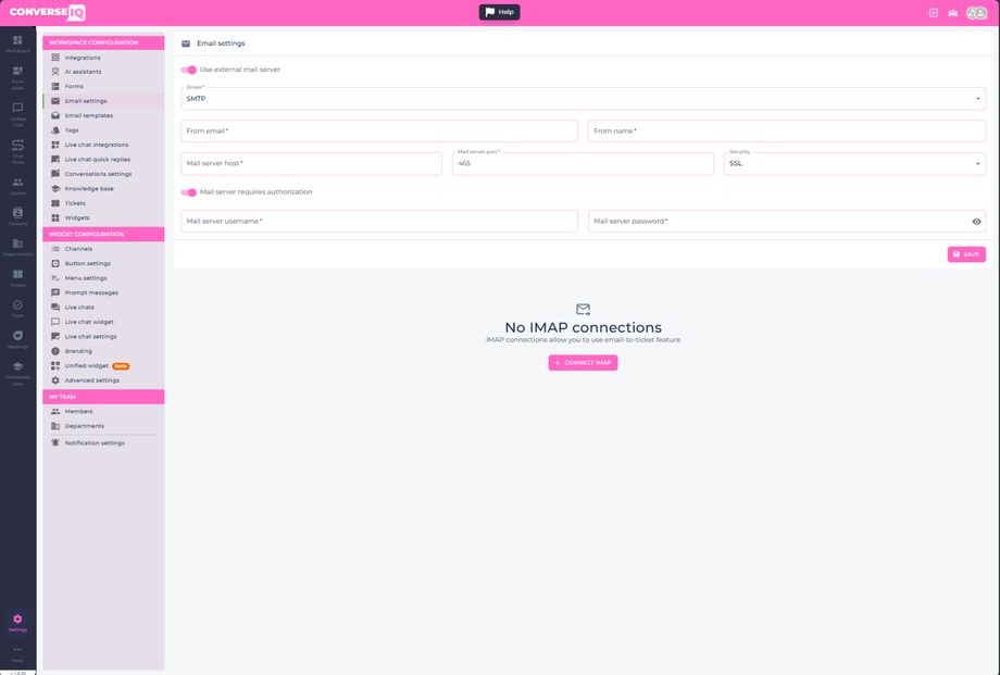 Set up your outbound and support email settings: